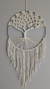 Quand on parle macramé, on fait toujours référence à l’arbre de vie. C’est un symbole d’harmonie qui apportera une touche de sérénité et d’élégance à votre espace. Chaque arbre est méticuleusement tressé à la main, faisant de lui une pièce unique.