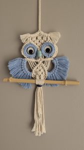 Parce qu’elle incarne la transition et la sagesse et qu’elle est superbe en noeuds de macramé la chouette est un animal facile à intégrer à son décor. Elle est idéale pour décorer un salon, une chambre d’enfant ou même un bureau. Présentée sur différents supports, elle fera l’admiration de tous avec ses gros yeux ronds et mobiles. s.