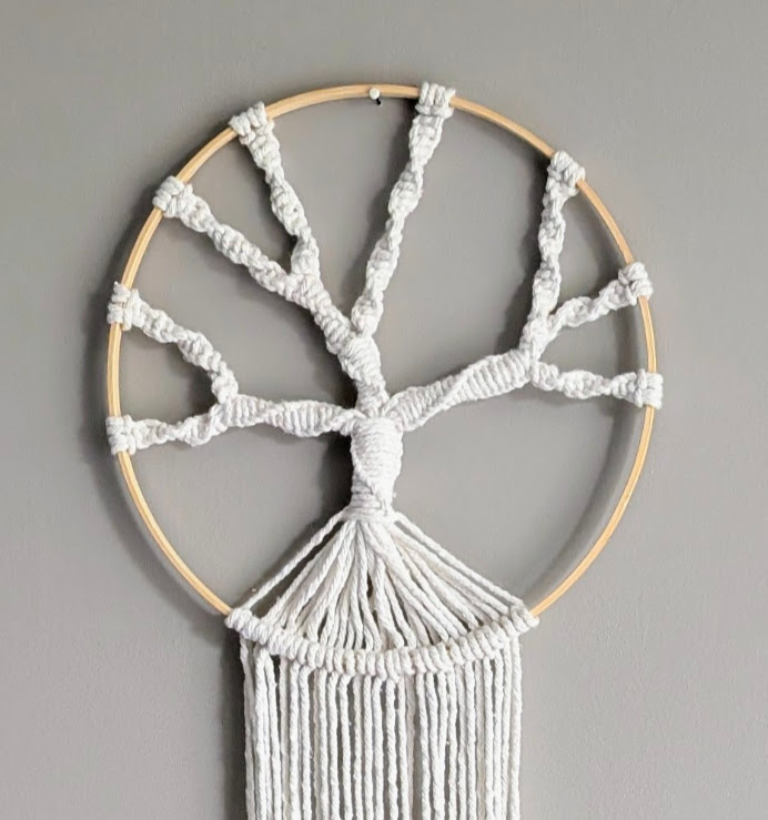 Arbre de vie torsadé réalisé dans un cercle bois de 30 cm avec du coton naturel de 3mm